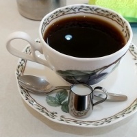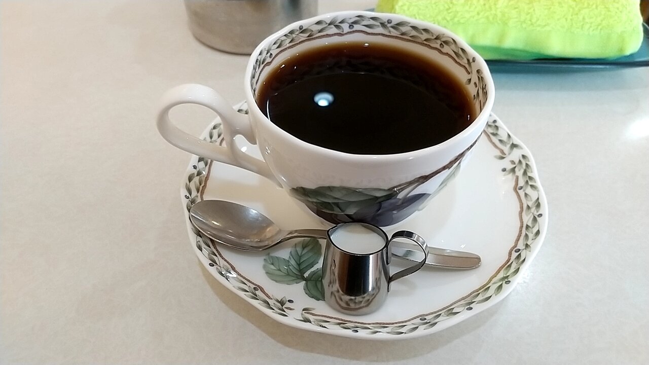 コクと苦味と酸味と全て強めの深煎り豆で淹れたコーヒーで、冷めると雑味が少し気になりますが、おおむね美味♪