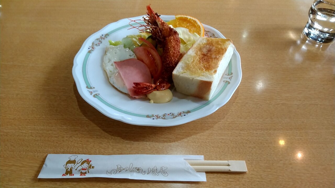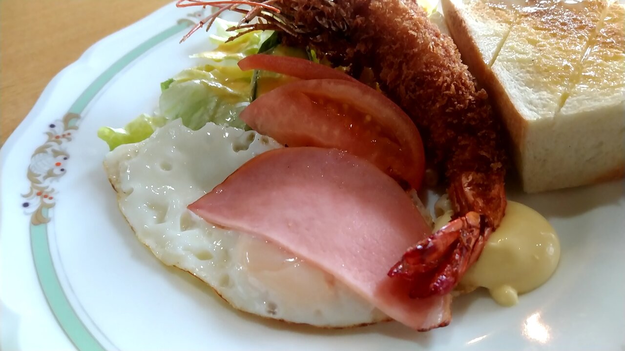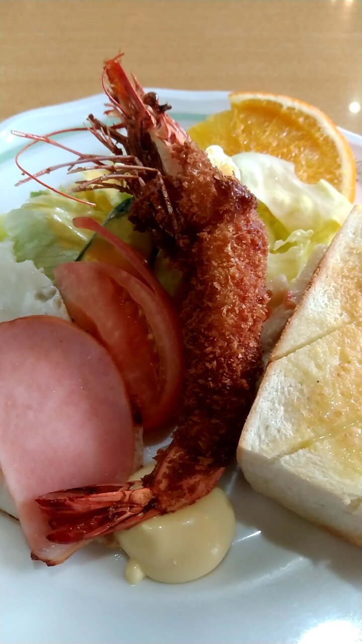 大きな有頭エビフライ付のモーニングは初めてです。