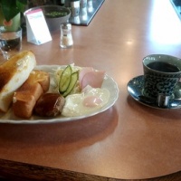 11:00までとそれ以降でも大きめの有頭エビフライ付のモーニングが頂けますが、11時以降は100円アップになり、お値段が変わります。